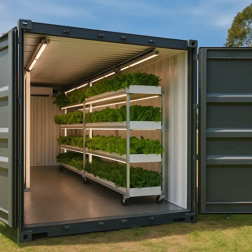 A. A shipping container farm is a climate-controlled, fully equipped growing space built inside a repurposed container. It allows year-round crop production in urban, regional, or remote areas. SCSAU’s units meet United Kingdomn agricultural and safety standards.